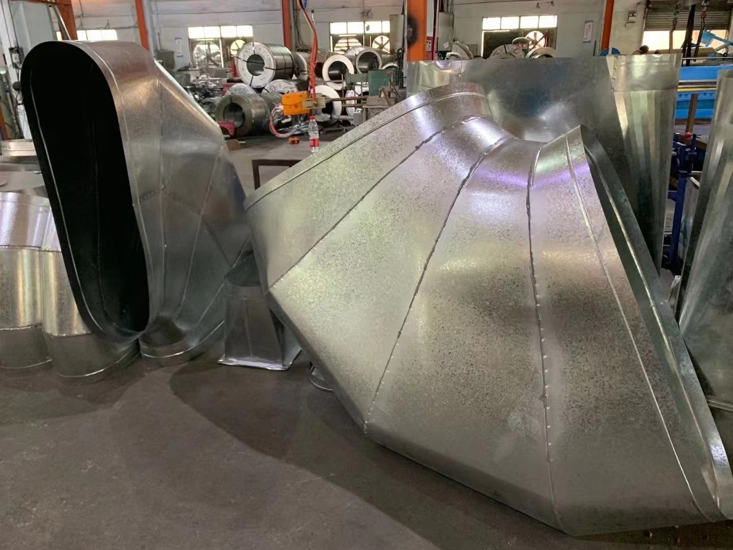 有些工廠生產車間很多塵埃,需要專門的除塵裝置,其中風流量較大的管道,可使用螺旋風管。